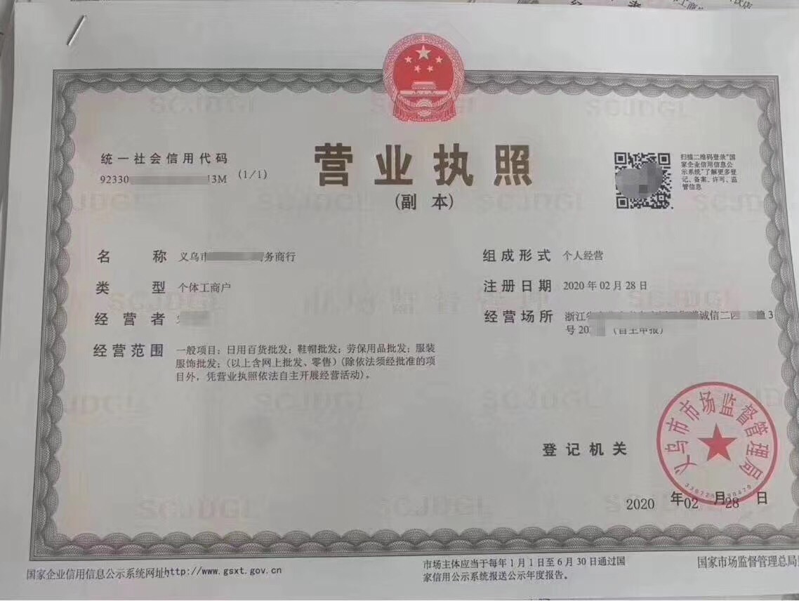 (2)公司名稱:義烏市XX電子商務商行/義烏市XX貿易商行,可以隨機也可以自己準;