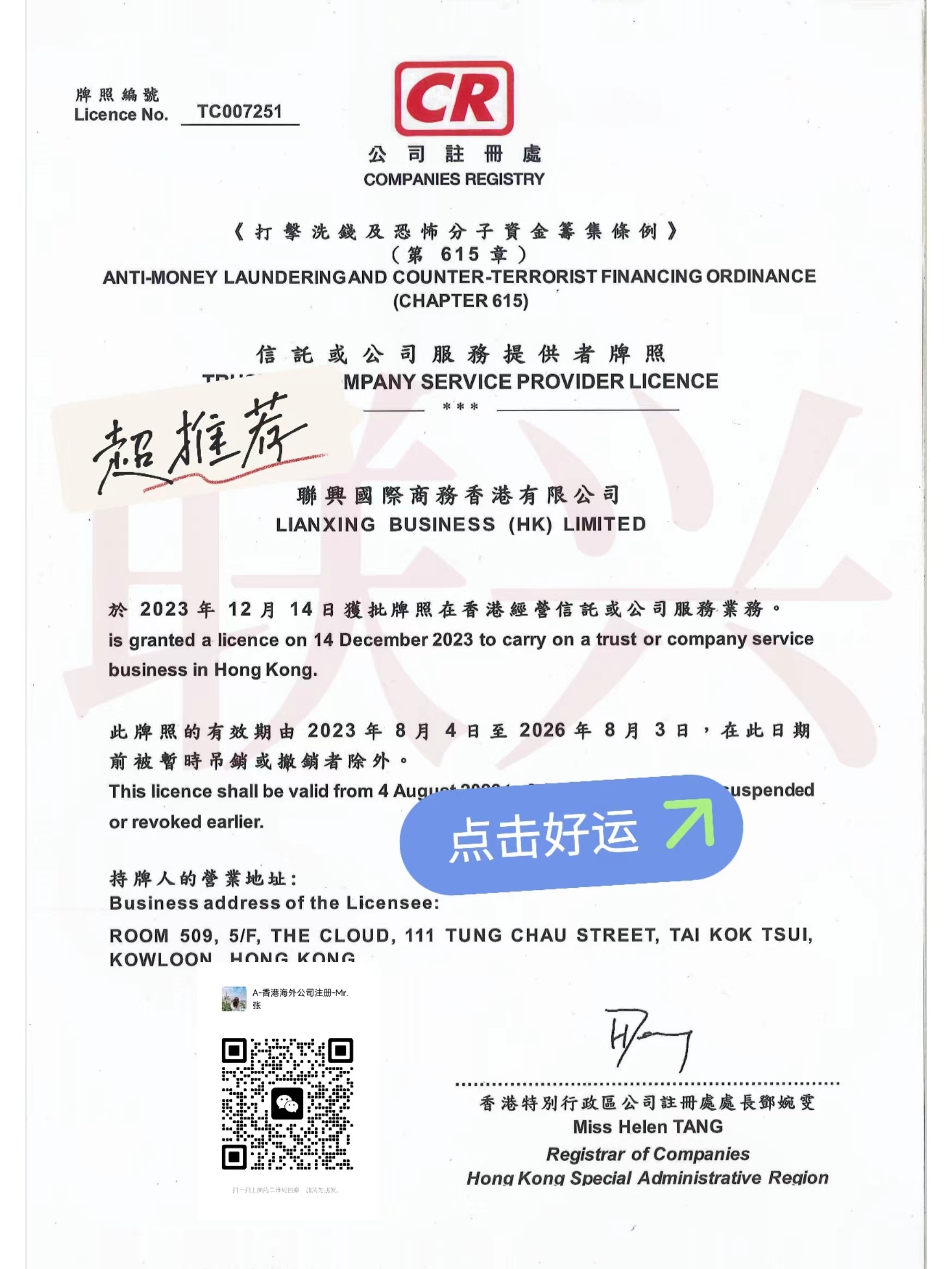 1、公司名稱:中英文版本,中文名稱以“有限公司”結尾,英文名稱以"Limited"結尾,不可簡寫