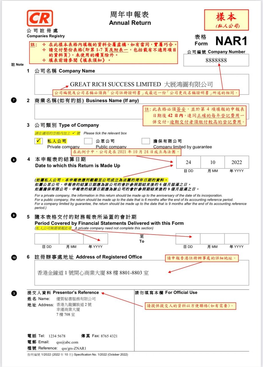 香港本地私人公司需在公司成立周年日后的42天內提交NAR1