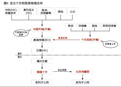 十方控股的紅籌架構(gòu)搭建,是實(shí)際控制人通過境外離岸公司,在十號(hào)文生效之后于境內(nèi)設(shè)立了一家外商獨(dú)資企業(yè),然后利用這家外商獨(dú)資企業(yè)收購了一家股權(quán)意義上有外資成分但法律意義上是純內(nèi)資企業(yè)的公司。其重組方式是否與十號(hào)文沖突,業(yè)界還存爭議。 文/蘇龍飛 朱銳 一家在國內(nèi)經(jīng)營二、三線城市報(bào)刊廣告業(yè)務(wù)的公司—十方控股—實(shí)現(xiàn)了在香港的上市。不過在資訊非常發(fā)達(dá)的當(dāng)今,通過公開渠道能了解到這家公司的信息不能不說少得可憐。 有人曾將分眾傳媒的業(yè)務(wù)模式概括為“談樓宇—裝屏幕—賣廣告”,如果套用這類說法的話,十方控股的業(yè)務(wù)模式可以描述為“談代理—賣廣告—做配套”:首先,與媒體談定廣告代理合作;其次,將廣告位向廣告商出售;最后,向廣告商提供廣告設(shè)計(jì)、版面、內(nèi)容規(guī)劃及活動(dòng)籌辦等增值服務(wù)或向報(bào)刊提供印刷服務(wù)。 十方控股的業(yè)務(wù)可以分為三個(gè)步驟,而每個(gè)步驟則由不同的經(jīng)營主體來負(fù)責(zé),即“福建十方”和“北京鴻馨圖”,而要了解十方控股的背景,就不得不從這兩家不論在股權(quán)還是業(yè)務(wù)上最初都沒有任何關(guān)系的企業(yè)談起。 非同一控制下的經(jīng)營實(shí)體 福建十方的主要控制人是陳志,1966年生人,早年是福州市公務(wù)員,2003年下海從商。福建十方則實(shí)際成立于2000年,彼時(shí)主要由陳志的妻子鄭守齡,以及其兄鄭柏齡持股,代理《海峽都市報(bào)》和《福州日?qǐng)?bào)》的廣告業(yè)務(wù),2003年陳志辭去公職,經(jīng)過幾次轉(zhuǎn)股,最后與其母親王寶珠共同持有福建十方的全部股份。2005年,陳志單方對(duì)福建十方增資,持股比例達(dá)到93.8%,也即在此期間,福建十方開始開展全面合作業(yè)務(wù),與《東南快報(bào)》、《生活新報(bào)》簽訂了全面合作合約。2006年,出于發(fā)展的需要,陳志為福建十方引進(jìn)了日資股東,日本上市企業(yè)Sun japan corporation的中國子公司北京聯(lián)迪恒星,該企業(yè)獲得了福建十方51%的股權(quán),而一年半以后這部分股權(quán)又轉(zhuǎn)讓至日本另一家上市企業(yè)Index holdings 的間接中國子公司深圳天訊(如圖1)。除了股權(quán)的變化,在此期間,福建十方代理的報(bào)刊也由之前的兩三家擴(kuò)展至10余家。 在福建十方發(fā)展的同時(shí),北京鴻馨圖也在逐漸發(fā)展。這家公司成立于2004年,最初由兩個(gè)獨(dú)立第三方持有,2004年則轉(zhuǎn)讓至以洪培峰(由其親屬強(qiáng)亦彬等代持)等人名下(如圖2)。洪培峰1967年出生,1991年開始涉足房地產(chǎn)經(jīng)營,2001年又創(chuàng)辦了主營廣告業(yè)務(wù)的廈門遠(yuǎn)通傳播有限公司。由于印刷、ICP服務(wù)不能由外資經(jīng)營,所以無法在股權(quán)上并到上市主體內(nèi),而只能用“協(xié)議控制”,所以在十方控股的架構(gòu)中,北京鴻馨圖主要負(fù)責(zé)出版物的發(fā)行咨詢與管理、印刷和電子發(fā)行業(yè)務(wù),最終和福建十方簽訂系列架構(gòu)協(xié)議。 上市背后的資本推手 兩家在股權(quán)上最初并無關(guān)系、主要控制人又沒有親屬關(guān)系的企業(yè)是如何合并到一起并打包上市的呢?反復(fù)研讀十方控股的招股說明書不難發(fā)現(xiàn),與之前案例不同,十方控股的上市背后更多是投資公司和財(cái)務(wù)顧問的影子,或者可以說,十方控股的上市是一次財(cái)務(wù)顧問主導(dǎo)的資本運(yùn)作行為。 傳隆資本或許就是十方控股上市的主要幕后推手。根據(jù)其官網(wǎng)介紹,傳隆資本是一家私營專業(yè)金融機(jī)構(gòu),主要投資于成長型企業(yè),并為該類企業(yè)的境外上市或收購兼并提供顧問服務(wù)。具體來說,傳隆資本主要做的是將中國企業(yè)以SPAC方式到海外上市,即在美國OTCBB市場上先成立一家空殼公司,并以募集到的資金在限定時(shí)間內(nèi)收購實(shí)體企業(yè),繼而轉(zhuǎn)板到主板上市。 截止2011年底,傳隆資本總共成立了三家現(xiàn)金并購上市公司,其中中國天瑞收購了福建十方的主要控股公司奧海傳媒,但顯然他們并不只是等待中國天瑞的轉(zhuǎn)板,而是將奧海傳媒在香港上市,打造出了十方控股。 十方控股的紅籌上市可以用一波三折來形容:首先要考慮的是如何在商務(wù)部《關(guān)于外購?fù)顿Y者并購境內(nèi)企業(yè)的規(guī)定》(2006年第10號(hào),俗稱“十號(hào)文”)背景下完成跨境重組,并將兩家不同實(shí)際控制人擁有的非關(guān)聯(lián)企業(yè)打包到一起;其次在資本的忽悠之下,選擇了先借殼登陸OTCBB再轉(zhuǎn)板納斯達(dá)克的上市路徑;發(fā)現(xiàn)此路不通之后更改方案轉(zhuǎn)道香港,方才完成最后的IPO。 十號(hào)文背景下的跨境重組 如前文圖1、圖2所示,福建十方與北京鴻馨圖是兩家相互獨(dú)立的企業(yè),其實(shí)際控制人分別為陳志、洪培峰。正是在財(cái)務(wù)顧問的撮合及參謀之下,2007年各參與方共同醞釀出了“將兩家打包到海外上市”的方案。 2007年5月18日,陳志、洪培峰等人在境外搭建了如圖3左上角所示的離岸架構(gòu),共同持有奧海傳媒(BVI),后者再全資持有漢鼎(HK)。 2007年6月12日,福建十方實(shí)際控制