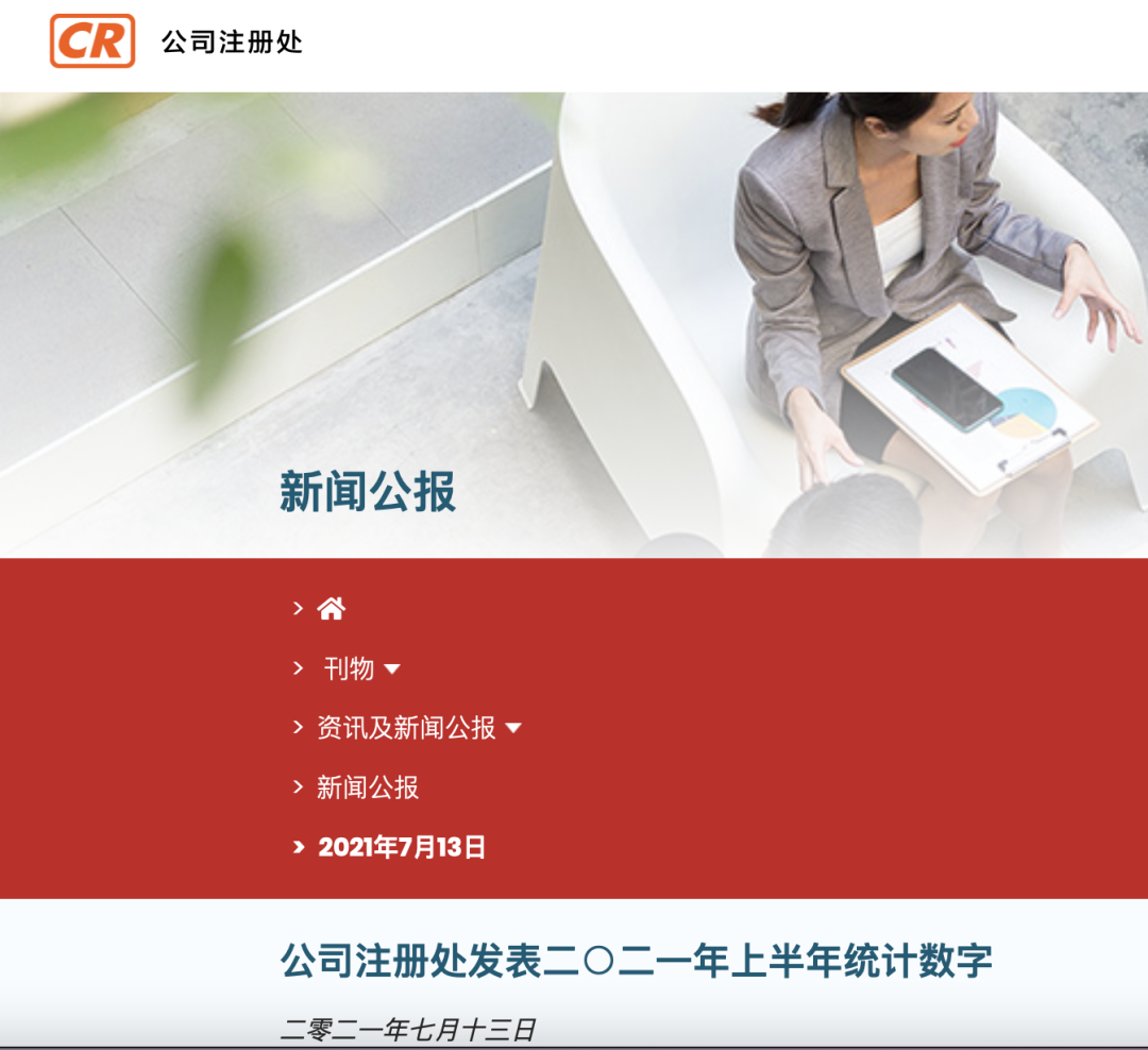 2021年7月13日,香港公司注冊處公布的上半年統計數據顯示,截至今年6月底,根據《公司條例》注冊成立的本地公司總數為“56,253家,較2020年下半年的數字上升11.07%”。2014年上半年記錄香港新成立公司創新高達到95,408家。