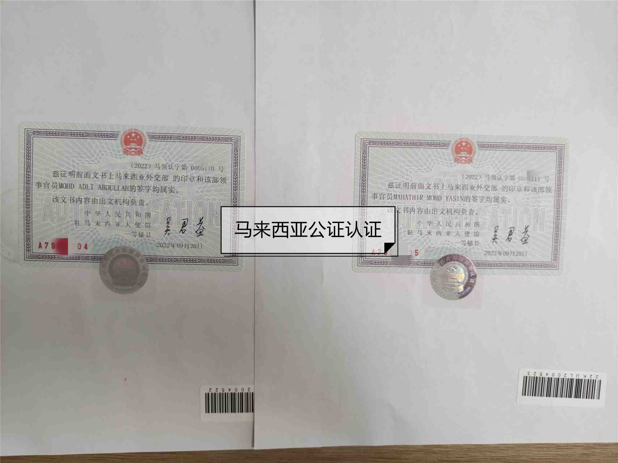 最后是送往中國駐馬來西亞使館辦理使館認證,用于證明馬來西亞外交部的簽字和印章的屬實。