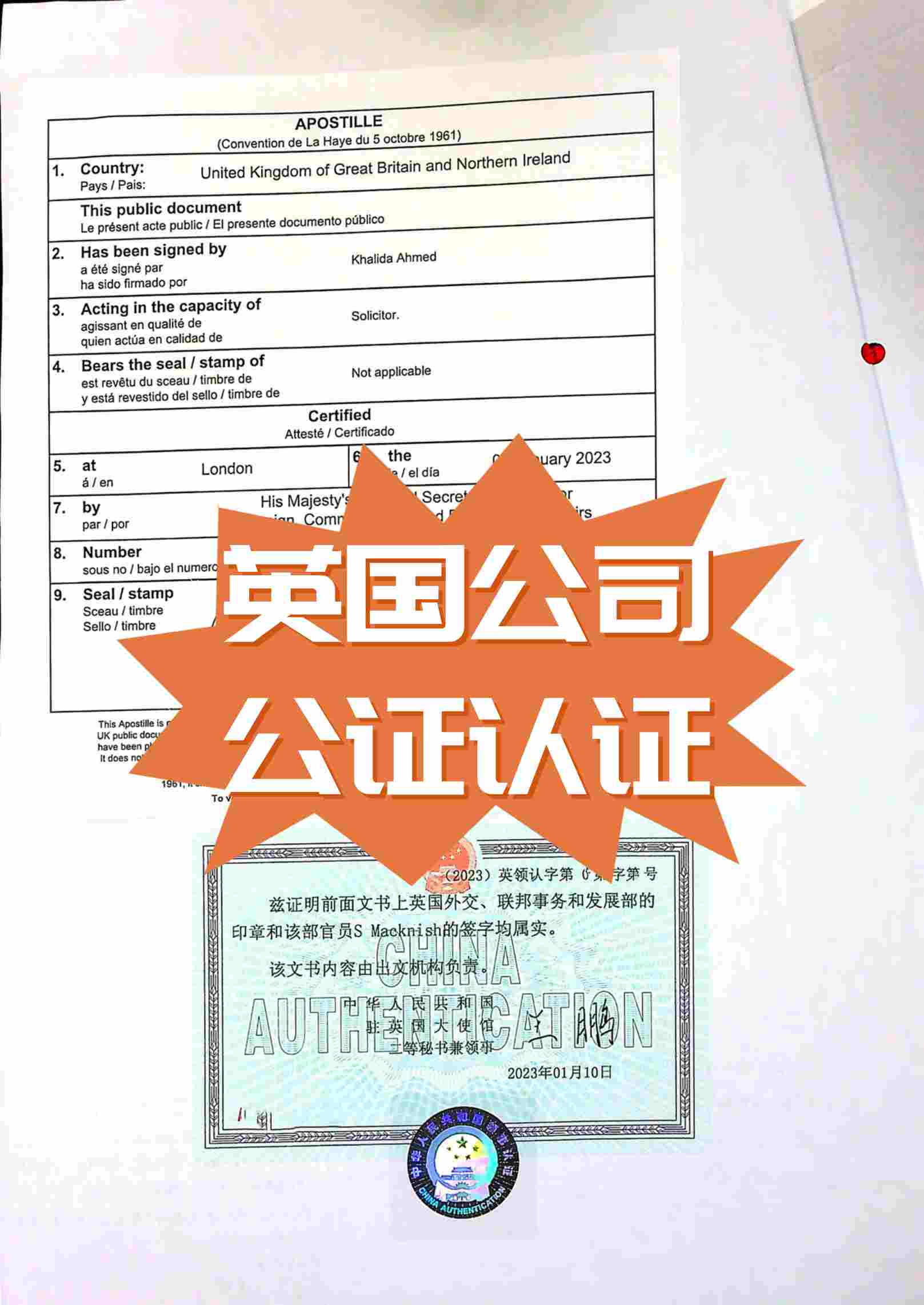 1、由國際公證律師或公證員對英國公司文件進行公證;