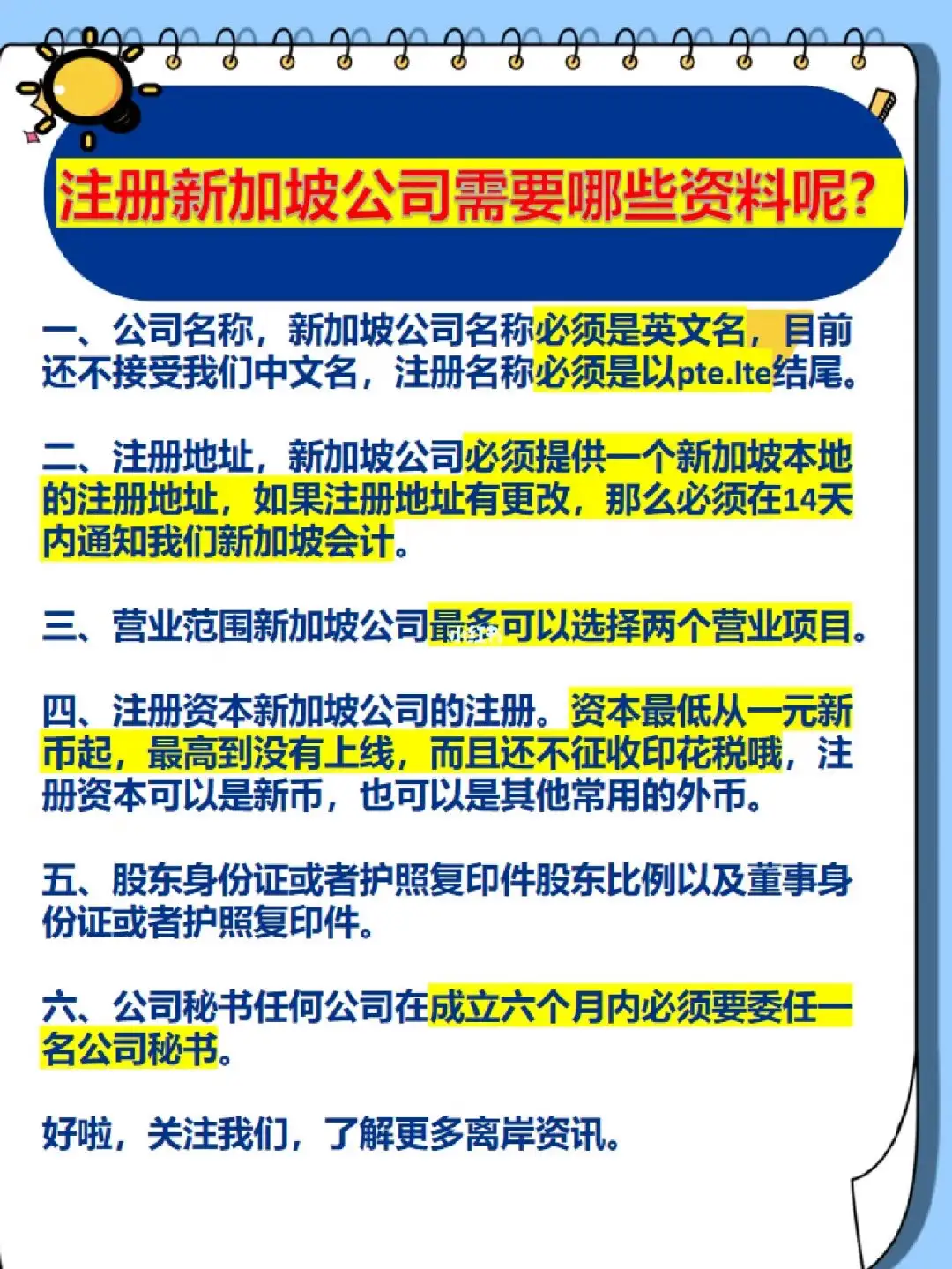 注冊新加坡公司所需文件