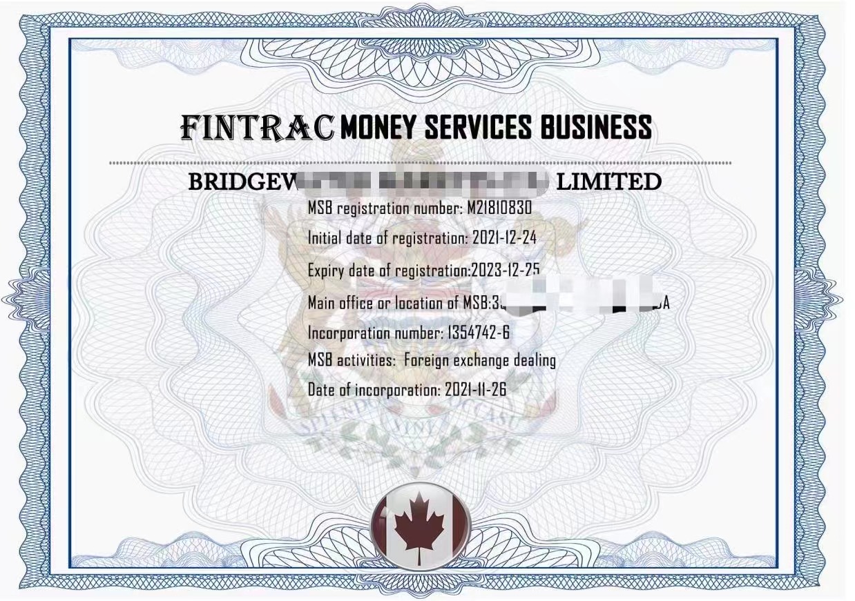 加拿大MSB牌照是由FINTRAC監管并頒發的一類金融牌照。金錢服務類業務開始在加拿大經營之前,都必須在FINTRAC上注冊MSB