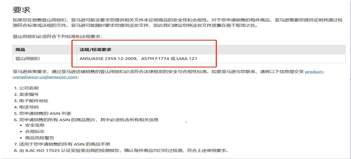 登山扣亞馬遜美國(guó)站需要ASTM F1774測(cè)試報(bào)告