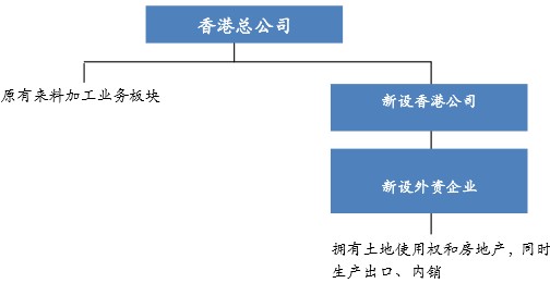 基于內地對投資房地產的限制,有關的土地出讓金需由外資企業以資本金一次付清。為籌集相應資金,集團在香港的銀行借貸,作為其對外資企業的部分資本金,另外也從內地的銀行借人民幣興建廠房。為達致稅收和資本結構優化,香港公司會以股東貸款方式將資金貸予外資企業。