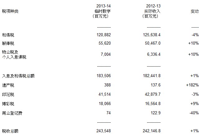 二零一三至一四財政年度稅收(臨時數(shù)字)