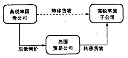 - 跨國集團公司內部,通過虛構的貿易活動,將高稅國公司的利潤轉移到島國避稅地。