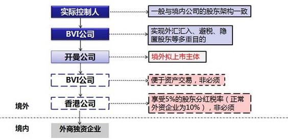 這種情況多見于異地上市的公司,即所謂“紅籌架構”。