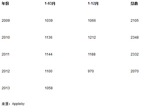 開曼群島的注冊總部發(fā)布的數(shù)據(jù)暫時有點延遲,數(shù)據(jù)只反應(yīng)到2013年3月。該年度前三個月的數(shù)據(jù)表明,開曼群島2012年下半年公司注冊總量的減少看起來已經(jīng)得到遏止。如果本地公司注冊繼續(xù)和前三個月的增長數(shù)據(jù)保持一致,它將很輕易地以高達(dá)8%的速度超過2012年下半年的數(shù)量。雖然有可能超過2012和2011年新成立的公司總數(shù),早期發(fā)布的數(shù)據(jù)顯示2013年會成為開曼群島新公司注冊數(shù)量爆發(fā)性增長的一年。
