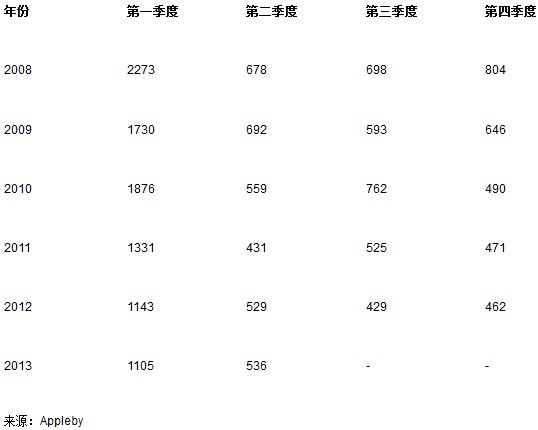 馬恩島2008-2013年公司注銷數(shù)季度表
