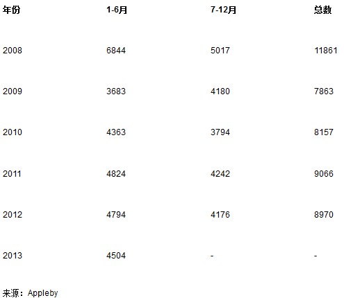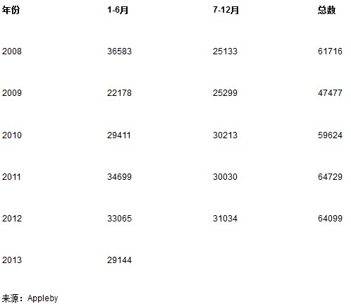 由于應(yīng)屬維爾京群島(BVI)的季節(jié)性趨勢對數(shù)據(jù)的影響,2013年上半年的離岸公司總注冊量比前六個月下降了大約3%左右。