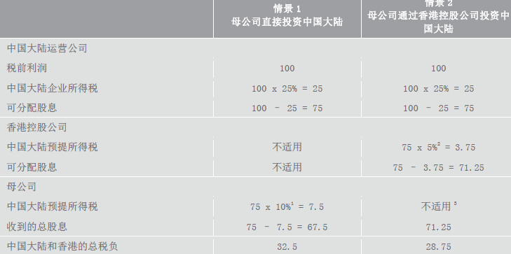 2. 如果香港控股公司持有中國內地運營公司不少于 25%的資本,則在中國內地與香港間安排下的股息預提所得稅稅率為 5%。