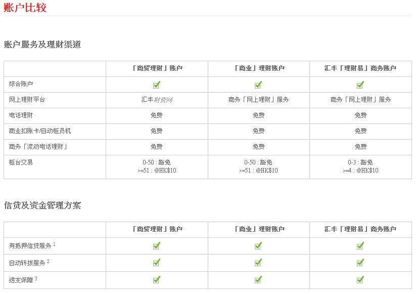 匯豐商貿(mào)理財(cái)賬戶,商業(yè)理財(cái)賬戶,匯豐理財(cái)易商務(wù)賬戶比較: