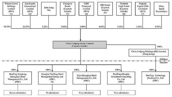 2007 年1 月漢庭上市公司殼公司China Lodging 在開曼群島注冊成立,同時成立China Lodging 香港公司。