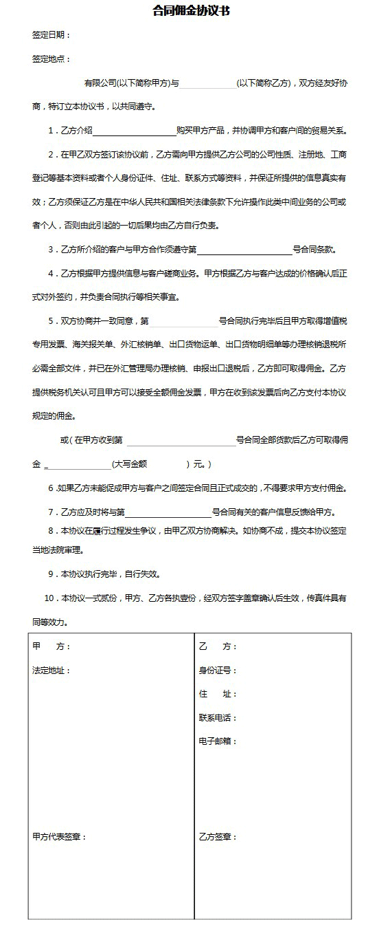 有關公司A(以下稱買方)和B(以下稱賣方)于2014年X月X日簽署的涉及XXXXXXX(貨物名稱型號)售貨確認書XXX(合同號),賣方同意并確認付予C公司 USDXXXX(大寫美元XXXX整)以作為其為該合同付出努力的傭金。該款項為合同總金額USDXXXX項下的傭金.賣方收妥買方付出的該筆款項后XX天內將相應傭金款項電匯至下列銀行及帳號: