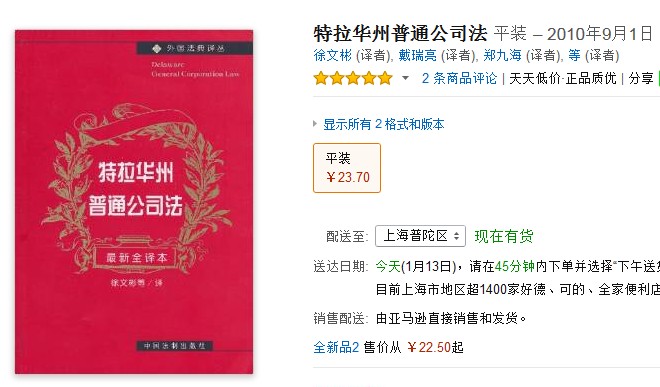 普通公司法近兩年修訂頻繁,修訂內容也較廣,僅2009年一年,修訂即達14處之多,這恐怕和美國、乃至世界的經濟形勢不無關系。為了反映特拉華州公司法的最新立法傾向,譯文以2010年生效的普通公司法文本為源文,內容涵蓋2010年4月前生效的所有修訂,原文條款沒有任何刪減,是一部反映原文全貌的譯本。