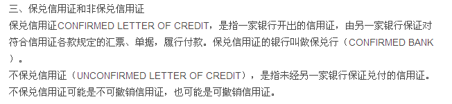 如果開證行的信譽(yù)好,就不必保兌——不保兌的信用證,如果開證行倒閉,受益人就不能夠及時(shí)收回貨款,而保兌信用證的受益人因?yàn)橛斜缎械膿?dān)保,所以,在開證行倒閉的情況下也能夠及時(shí)收款——這是保兌與否的區(qū)別。