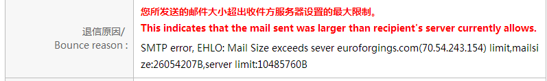 退信原因:您所發送的郵件大小超出收件方服務器設置的最大限制。