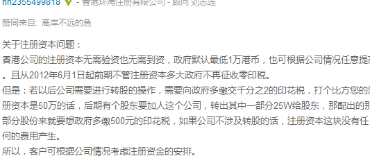 建議一萬港元即可,無需驗資,不必要為以后如何轉股那些多付千分之2的稅金給政府答