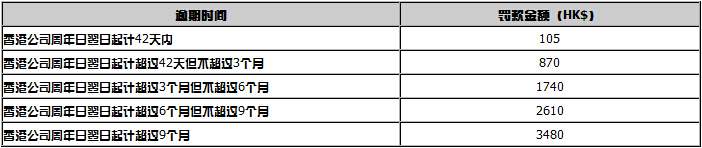 周年日翌日起計(jì)超過6個(gè)月但不超過9個(gè)月,罰款HK$2610