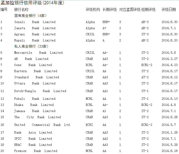 孟加拉銀行信譽評級