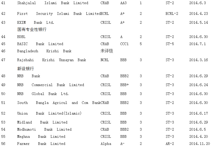 51 South Bangla Agricul and Com Bank CRAB BBB2 3 ST-2 2014.6.30