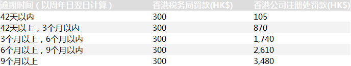3) 超過年審期限3個月但不超過6個月HKD1,740