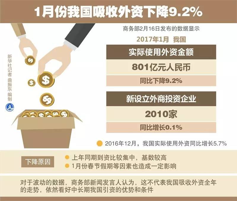 至于今年1月吸收外資下降,主要是受基數(shù)和春節(jié)假期等因素的影響,以1月單月的數(shù)據(jù)不足以判斷全年走勢,更不足以判斷中國吸收外資的大勢。