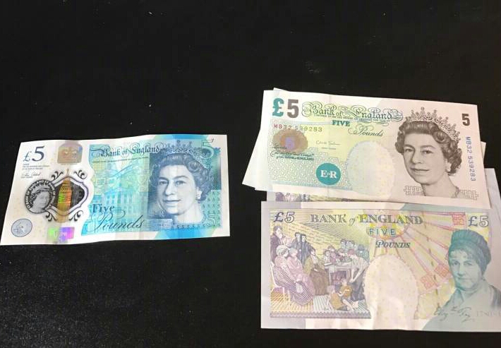 注意,明天英國舊版紙質五英鎊要停止市面流通啦(圖片右邊那種)