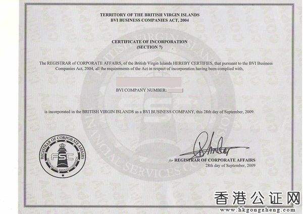 Bvi公司注冊證明文件;