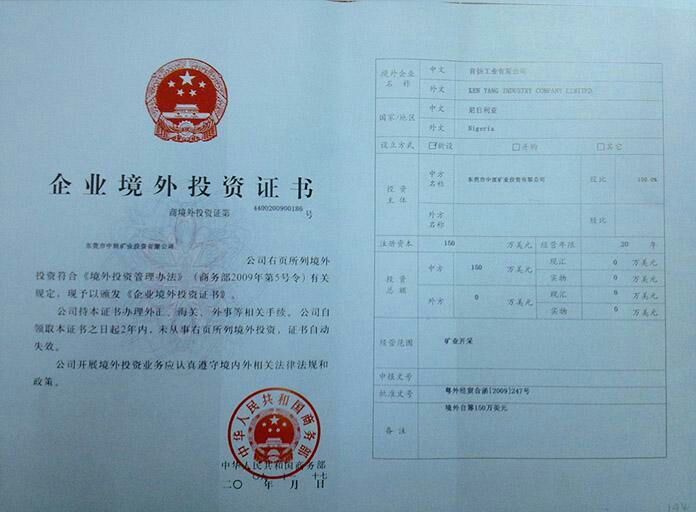另外,企業如果是對外設立子公司之類的,還需要獲得由國家發改委的備案,備案通過,企業就獲得境外投資證書。