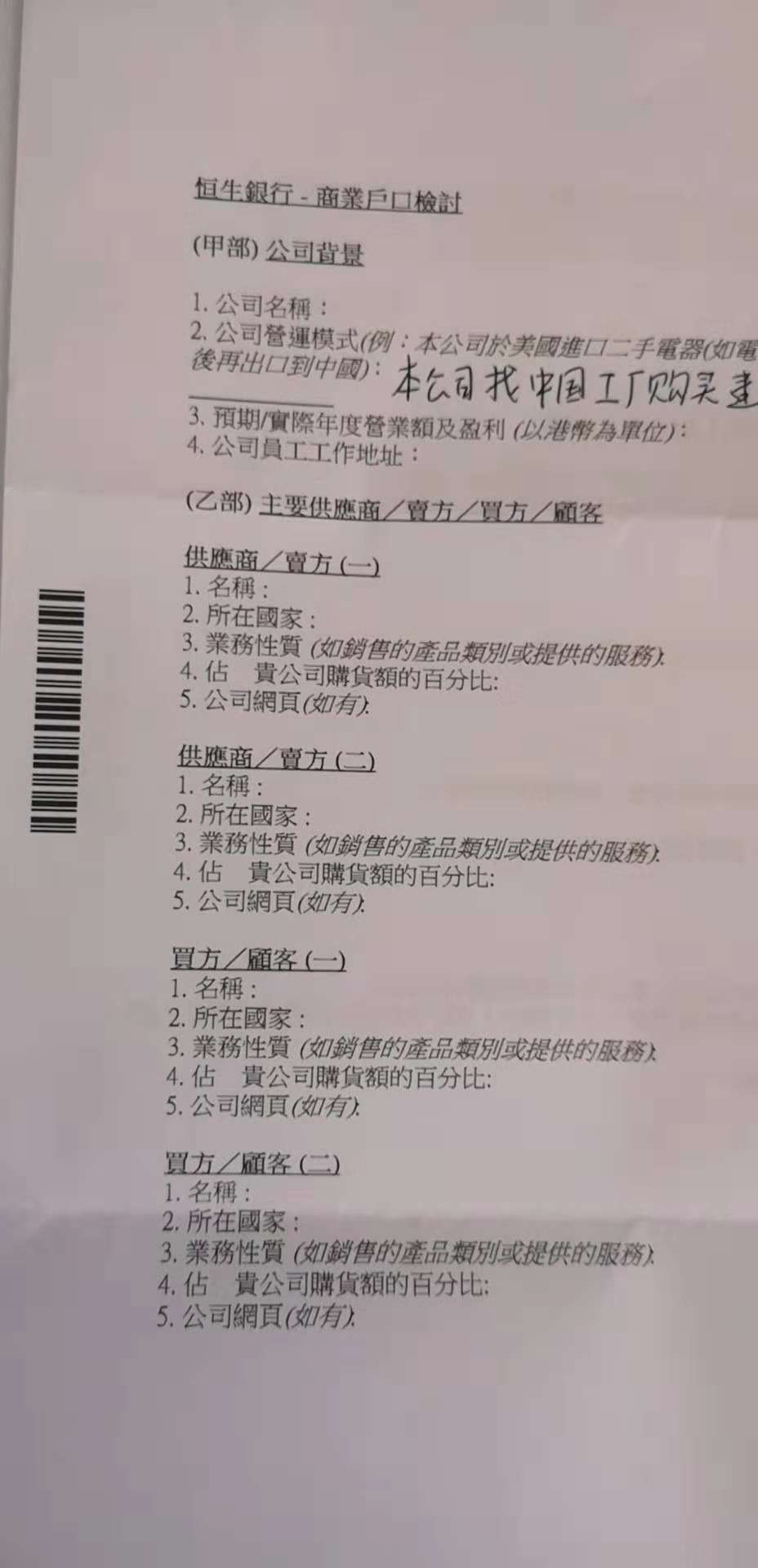 (2) 主要從事什么行業 ——簡述自己的貿易(銀行歡迎正常貿易公司,不喜歡投資類的公司)