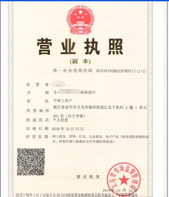 2:個體戶名稱:義烏市XX電子商務商行(此名稱工商隨機)