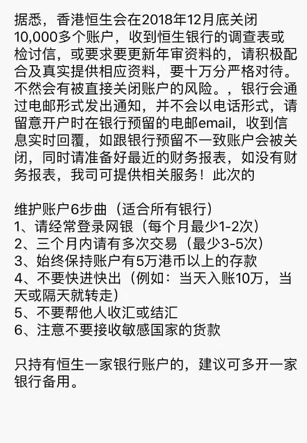 1.大部分客戶的匯豐或恒生銀行賬戶被銀行方面凍結了???收款或匯款功能,銀行方面直接通過短信、郵件的方式通知即將停止提供公司賬戶的相關服務。