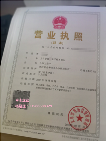 個體戶名稱:義烏市XX電子商務商行(因核名重合率太高,此名稱基本上都是工商隨機,不影響結匯)