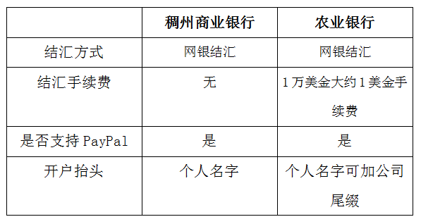 開戶行:目前結匯政策穩定和結匯操作方便的就是稠州商業銀行和農業銀行,可以根據自己的需要的來選擇,下面是銀行的情況介紹對比圖