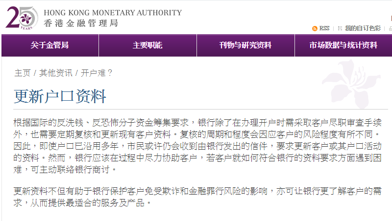 首頁 » 離岸問答 » Updating Account Information——From Hong Kong Monetary Authority