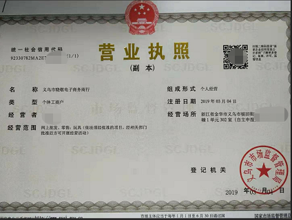 首先注冊(cè)一個(gè)義烏個(gè)體工商戶的營業(yè)執(zhí)照: