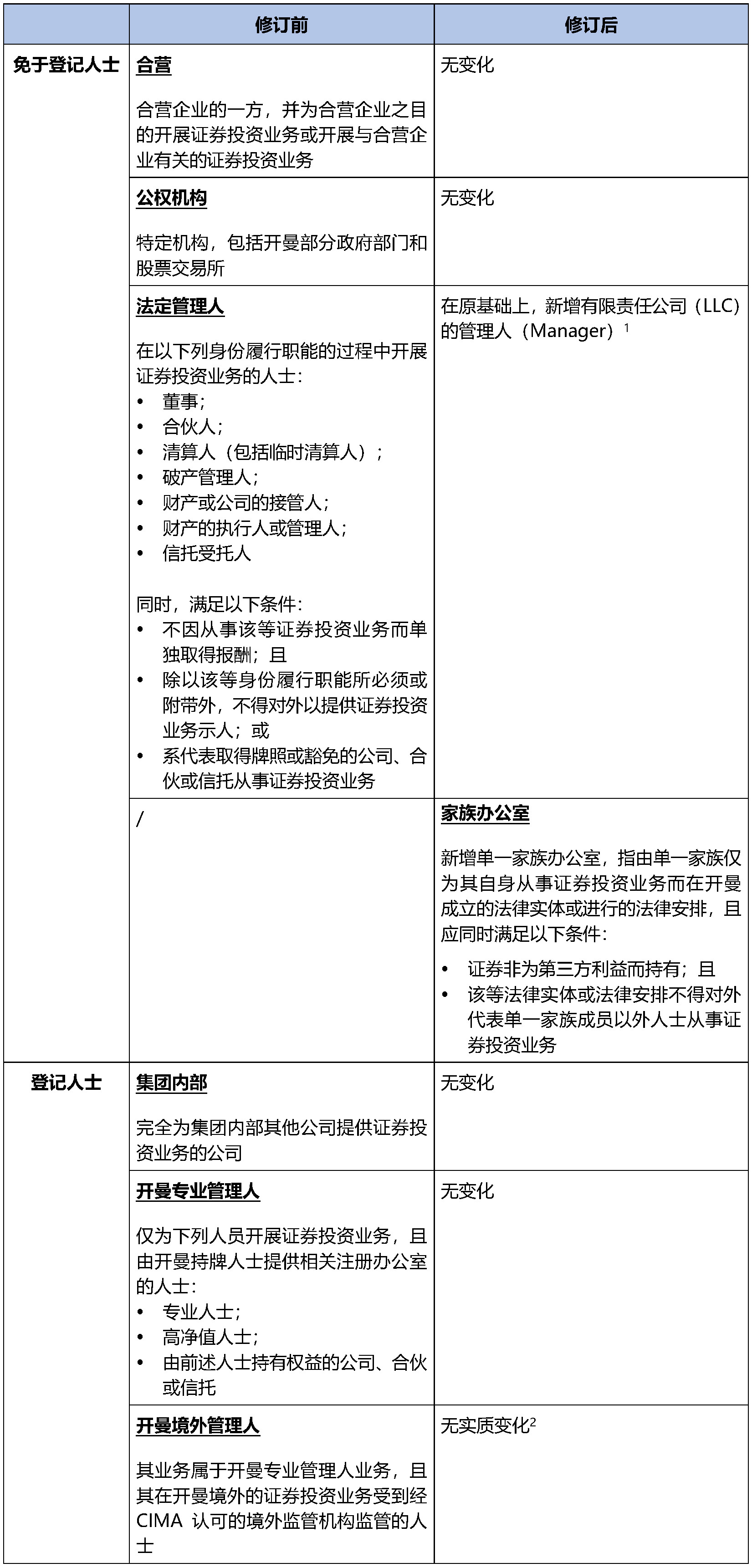 新增有限責任公司(LLC)的管理人(Manager)以及單一家族辦公室兩類人士作為新規項下的免于登記人士;