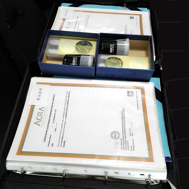 完整的文件包括:注冊證書(這個相當于營業(yè)執(zhí)照)、注冊紙、章程、公章、鋼印、律師文件、公司成立公告、注冊地址公告、新方掛名董事授權(quán)文件、新方商業(yè)秘書授權(quán)文件、首次董事會議書、光盤、文件夾、文件盒共14項。