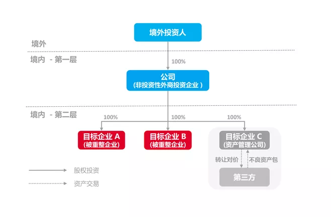 28號文第二條的優化措施將對外商投資的各個領域以及搭建海外架構的境內公司產生深遠影響。以近幾年外資非常感興趣的國內不良資產投資為例,未來境外不良資產投資基金或機構將可在境內設立投資平臺直接向各被重整企業以股權出資,同時也可投資于資產管理公司(如四大資產管理公司、省級資產管理公司或者民間資管公司)以資產轉讓或債的方式收購不良資產包。