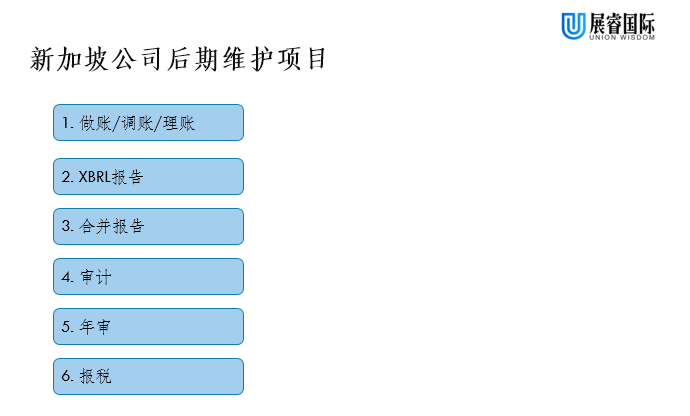新加坡成立之后,后期是需要做賬、年審和報(bào)稅的的,根據(jù)不同公司情況,分為以下6部分: