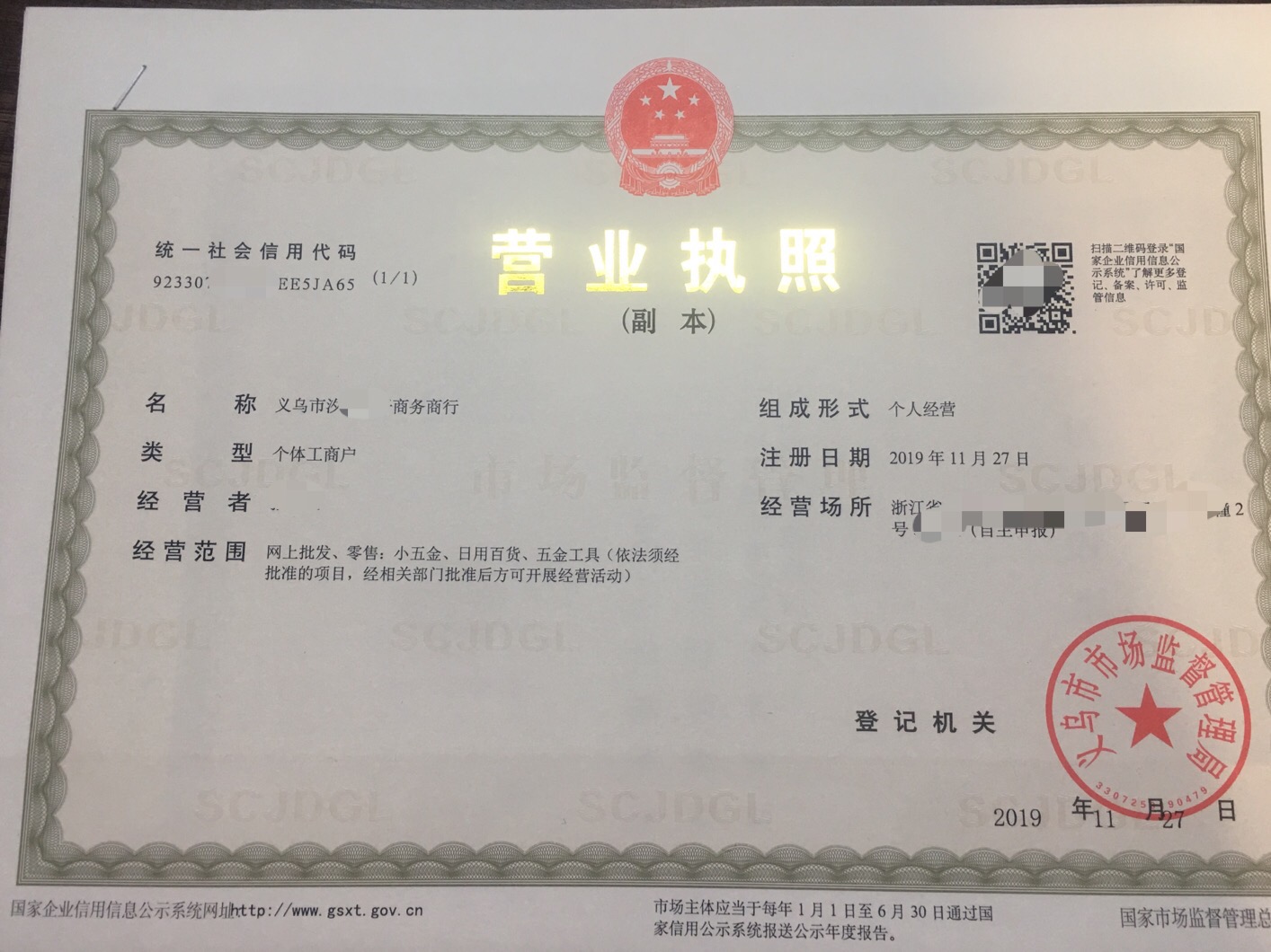 個體戶名稱由工商隨機,如:義烏XX電子商務商行