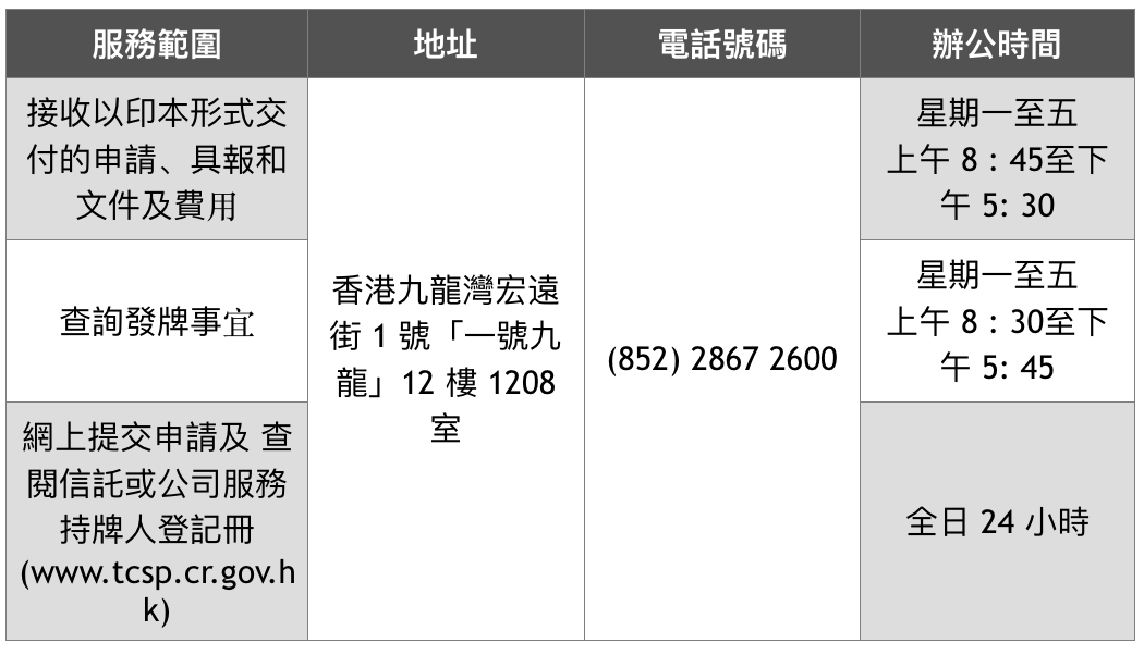 信托及公司服務提供者注冊辦事處(一號九龍)