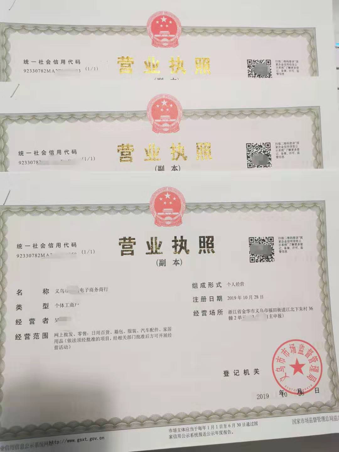 2個體戶名稱:格式(義烏市**電子商務商行)一般是工商隨機的