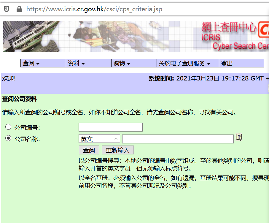 這個地址》》》》:http://www.icris.cr.gov.hk/csci/