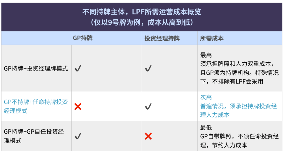 ? 針對需要持有9號牌的LPF,其持牌主體可以是GP本身,也可以是由GP所任命的投資經(jīng)理。對GP本身而言,如果其自身持牌且又愿意兼任投資經(jīng)理,這是最低成本、高效率的情況。