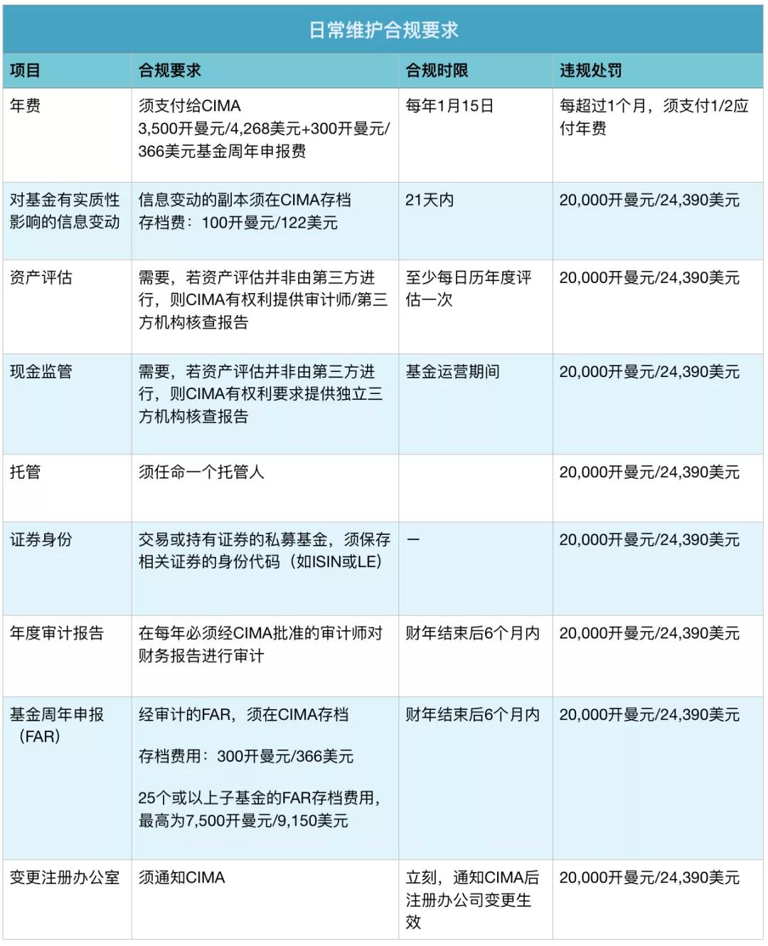 首先,我們來看開曼ELP在日常維護方面都有哪些合規(guī)要求。根據(jù)開曼基金法及相關(guān)法例,開曼ELP需要在年費、信息變動、資產(chǎn)評估、現(xiàn)金監(jiān)管、托管、證券身份、年度審計、周年申報、變更注冊辦公室等方面進行日常維護。